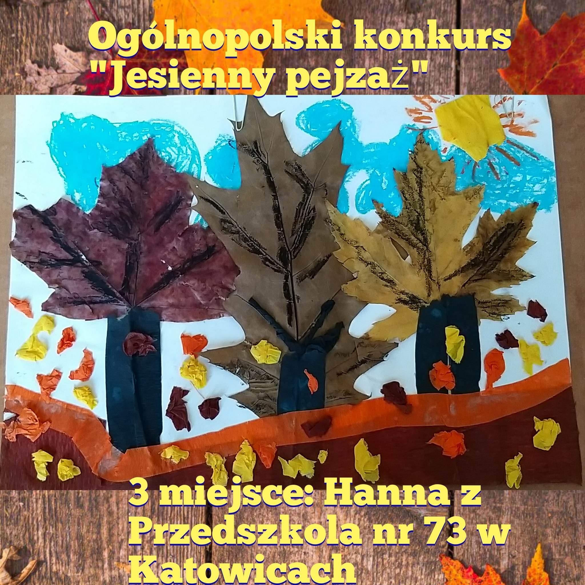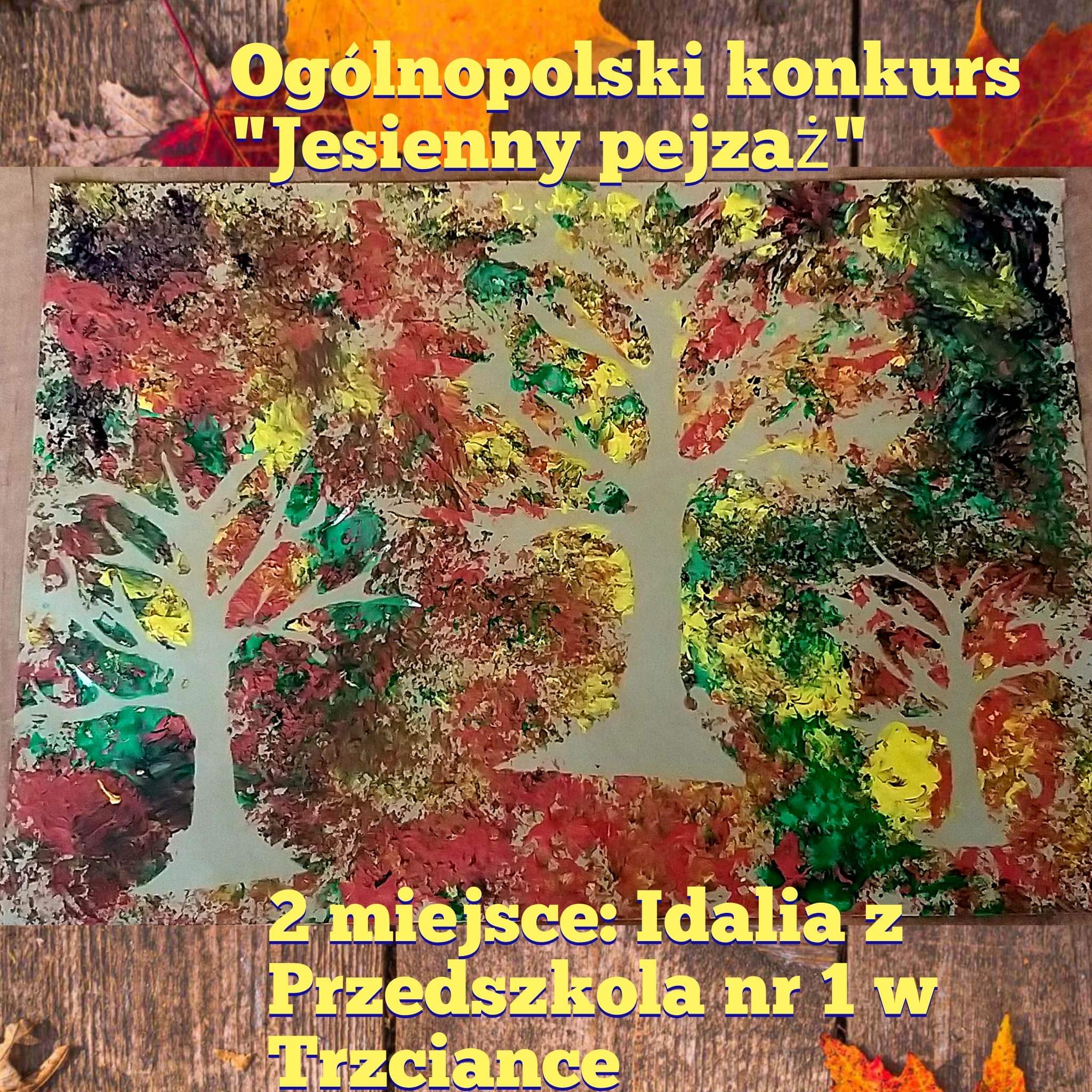 Dziękujemy wszystkim Dzieciom za udział w naszym ogólnopolskim konkursie "Jesienny Pejzaż" Wasze prace były tak dobre, że nie potrafiliśmy się zdecydować, dlatego są aż dwa trzecie miejsca!