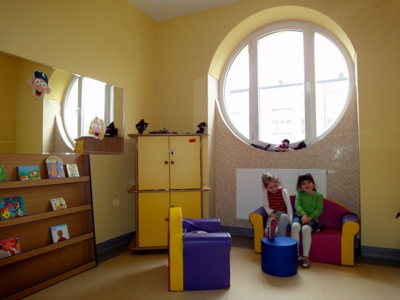 The facilities include a locker room, individual classrooms for smaller groups of children and larger rooms for art and physical movement activities, lab, library as well as a large canteen and kitchen area for meals. All rooms meet and support guidelines and requirements issued by fire protection, work safety and hygiene regulations.